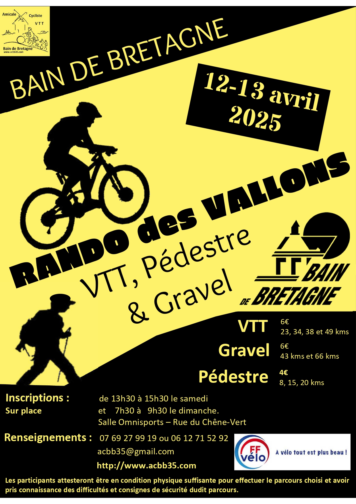 Nous organisons une sortie Gravel/VTT sur trois jours, du 22 au 24 avril (voiture suiveuse). Au programme: un aller vers le Mt St-Michel via La Régalante, puis un retour en suivant principalement les cours d’eau. Clôture des inscriptions mi-mars.